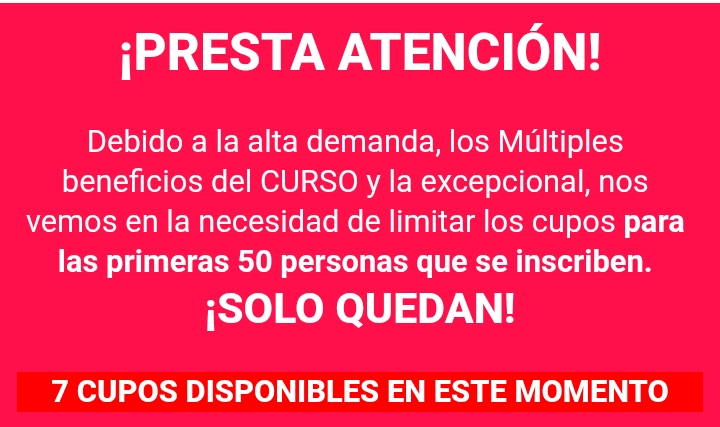 Es muy simple! T e daré 7 dÃas de garantÃa para que veas el curso completo y asistas a las sesiones por zoom, si por algún motivo, no es de tu agrado o no era lo que esperabas te devolveré el 100% de tu dinero sin hacer ninguna pregunta .